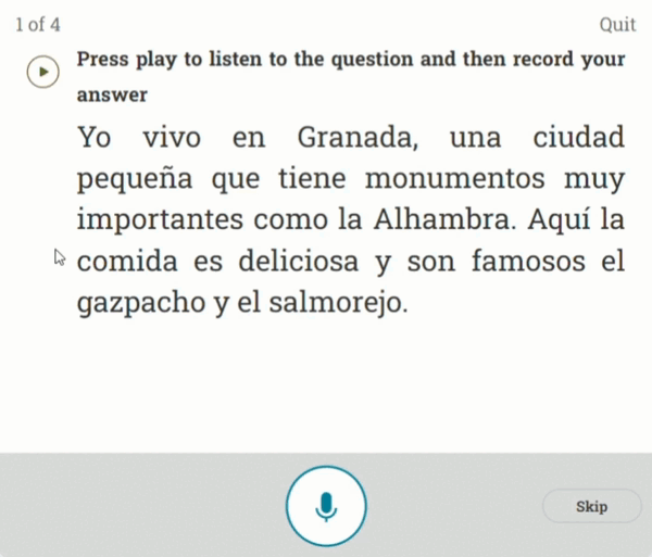 In this guide we will list a variety of speaking activities for language learners, starting from beginner activities and progressing towards more advanced ones. In each activity you will find a link to a demo application you can try out, and the implementation guide for creating that activity with the Speechace API.